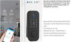 Tiện ích mở khóa 2 chiều(cả mặt trong và ngoài nhà): App TTLock trên Smartphone (mở khóa và quản lý trên điện thoại), Vân tay, Thẻ từ, Mã số và chìa cơ.
