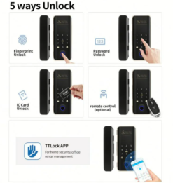 Kiểu mở khóa: App điện thoại (TTLock), Vân tay, Thẻ từ và Mã số