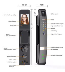 Khóa thông minh có camera chuông cửa Denso Lock FI9 với tính năng mở cửa hiện đại 7 trong 1: Nhận diện gương mặt (Face ID), Mở khóa từ xa qua điện thoại (App Tuya), Vân Tay, Thẻ Từ, Mã Số và Chìa Cơ